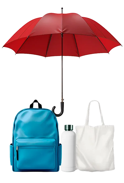 Como plumas, carpetas, cilindros, bolsas ecológicas, cubre laptops, gorras, tazas, pulceras, loncheras etc.
